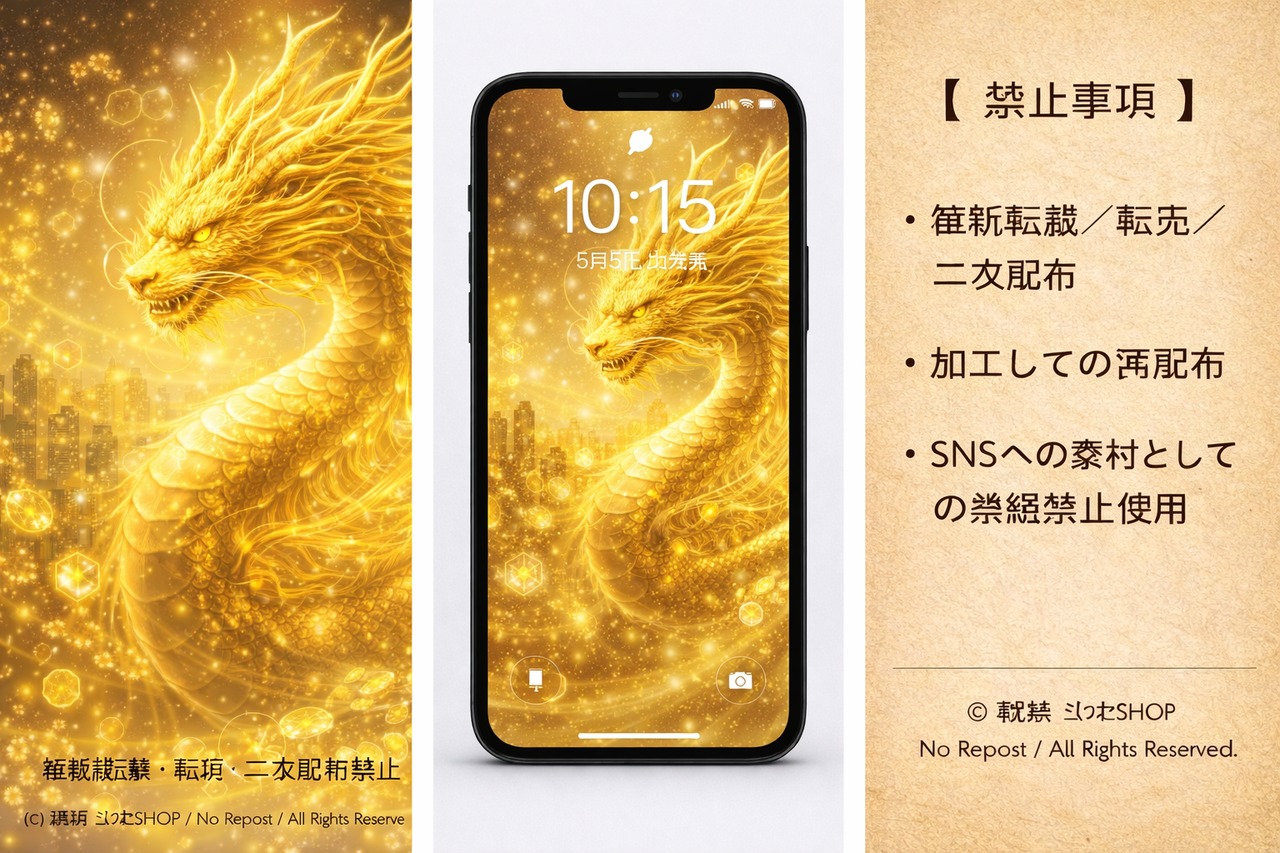 この壁紙は、龍華(りゅうか)が“金運・仕事運”の象意を込めて制作した、